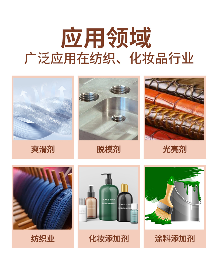 氨基硅油是化妆品的重要添加剂,主要用于洗发香波、烫发液、毛发修复剂、固发剂等发用化妆品中。洗发液中添加氨基硅油能使水、表面活性剂等成分更容易分散,并能赋予头发柔软的触感、易于梳理及光泽。