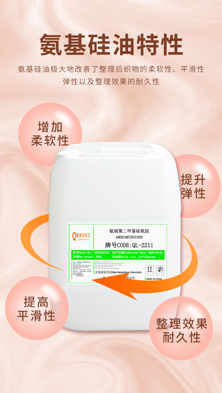氨基硅油是专门用于纺织品柔软整理剂的基本成份.它具有最佳的吸附性、相容性及易乳化性.使用混合器或均质机,氨基硅油容易被适当的表面活性剂乳化成稳定、透明的微乳液.它可以单独使用,也可以与其它有机硅或有机柔软剂组合成为特殊的柔软整理剂,适用於各种纺织品的柔软整理。