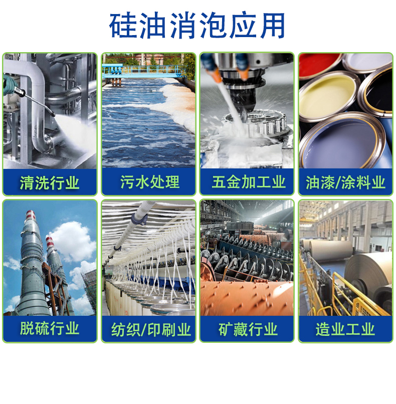 (1)应用面广:由于硅油特殊的化学结构,既不与水或含极性基团的物质相溶,也不与烃类或含烃基的有机物相溶。由于硅油对各类物质的不溶性,因而应用面广,既使用水体系消泡,又可在油体系中使用。