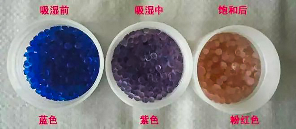 变色硅胶吸收水分后的颜色变化过程(图片来源于网络)