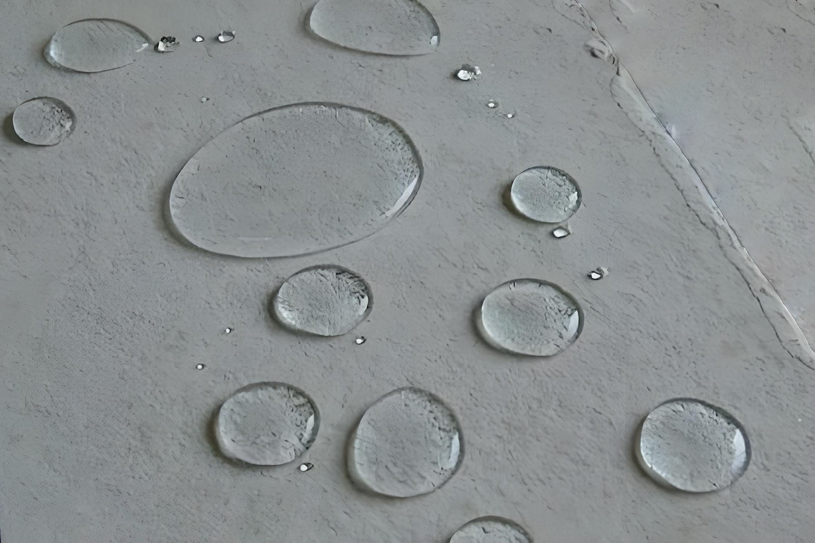 通过渗透基材形成网状硅树脂膜,表面产生「荷叶滚水珠」效应,阻止液态水渗透,同时允许水蒸气逸出,实现防水与透气的动态平衡。
