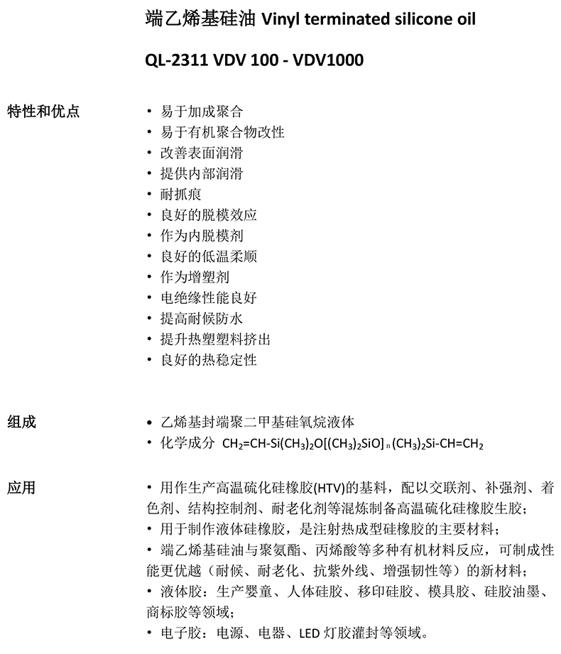 端乙烯基硅油 乙烯基硅氧烷QL-2311 VDV1000cst