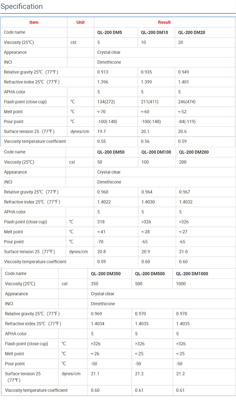 ■ 低表面张力表面张力低是硅油的特性。表面张力低表示具有高的表面活性,因此,硅油具有优良的消泡抗泡性能、与其他物质的隔离性能和润滑性能。
