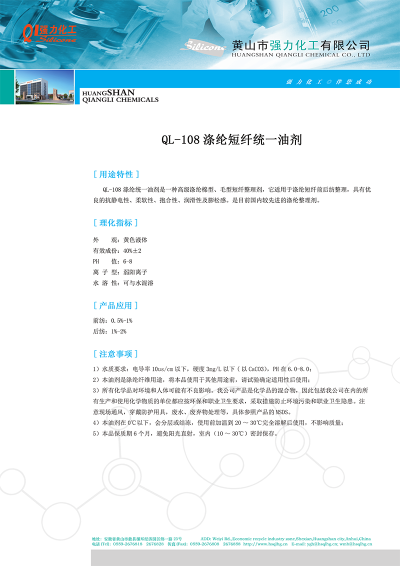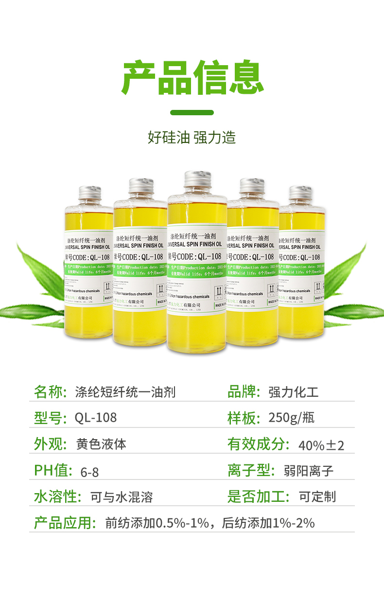 强力涤纶短纤统一油剂QL-108 纺织柔软剂处理剂